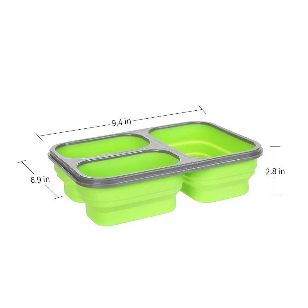 - 三格食品硅胶折叠饭盒 特点: